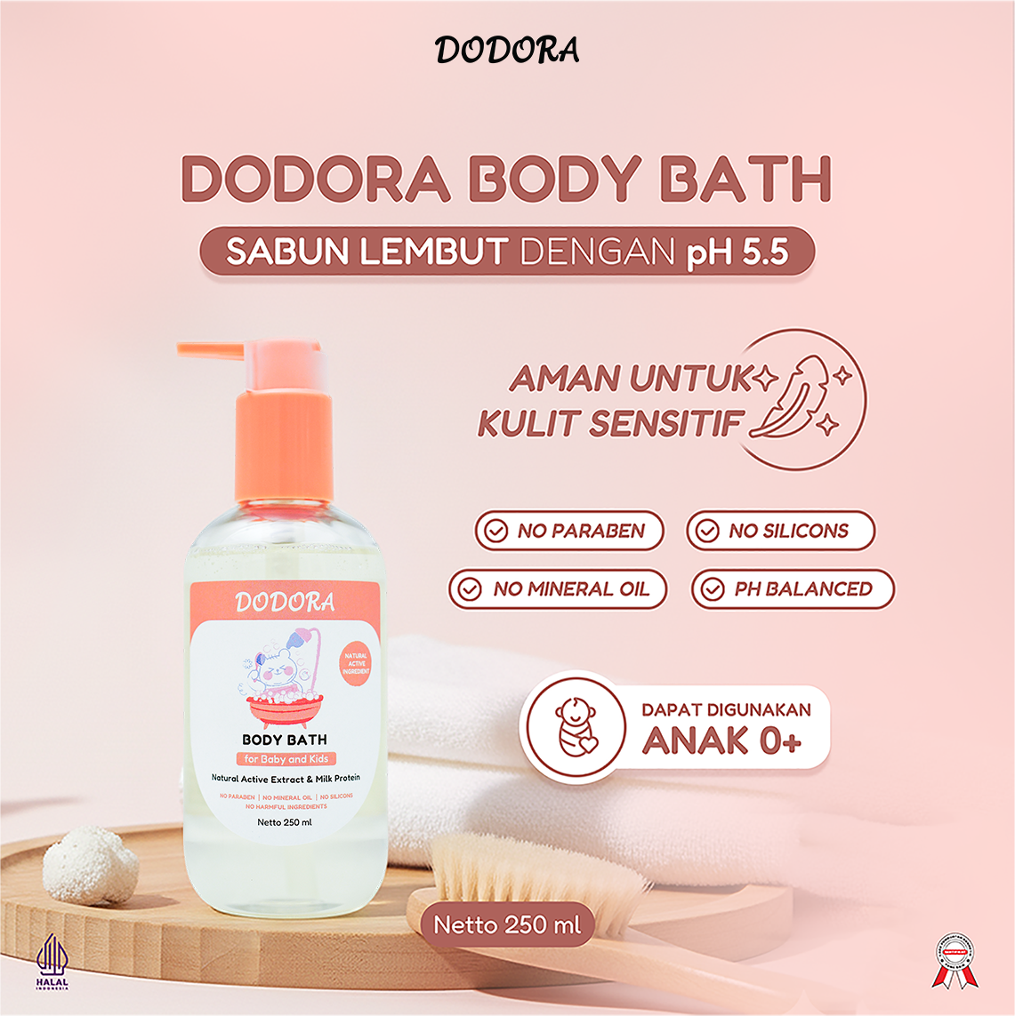 - Diformulasikan dengan 温和配方 dan pH 阳 disesuaikan untuk produk 婴儿和儿童